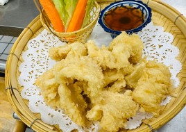Basil, cucumber, carrots, and rice noodles wrapped with soft rice paper served with our house special light brown sauce and crushed peanuts