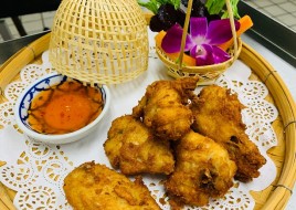 Shrimp wrapped with flour paper and deep-fried served with sweet & sour sauce