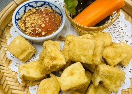 Golden fried tofu served with sweet & sour sauce and crushed peanuts.